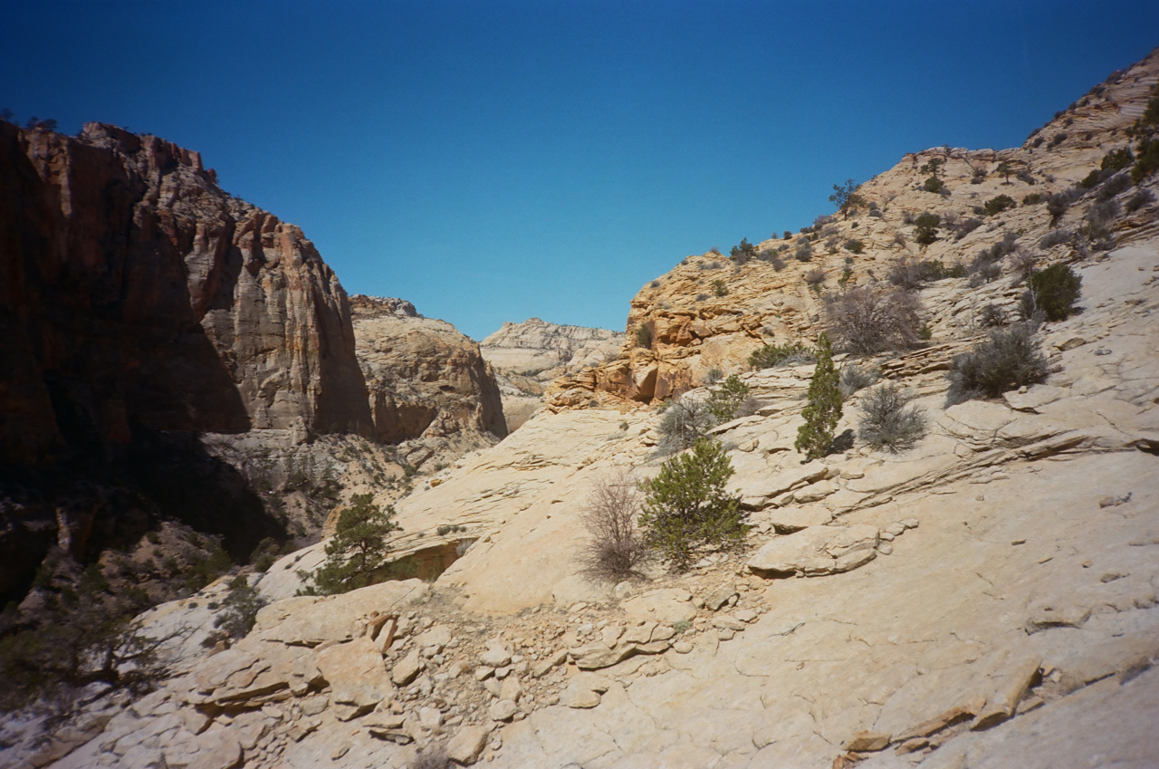 Along the way, I passed through what may have been my favorite canyon of the trip, a rather shallow gulch with beautiful white stone that wouldn’t even register on most maps. Once again, my route was silent and empty.