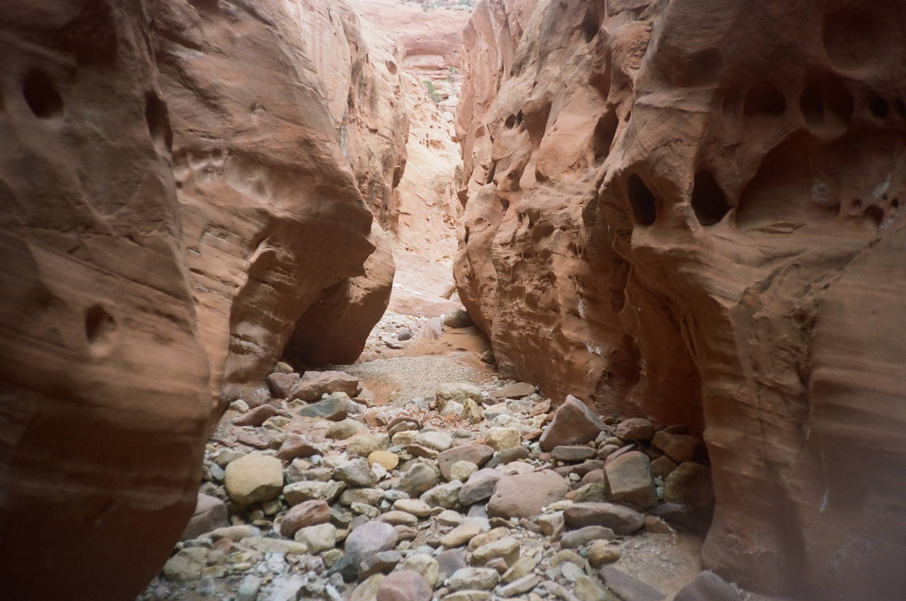 Once again, things got harder instead of easier. Every hundred feet or so the canyon would require a drop/scramble of six feet. I was tired to the bone, very thirsty and determined to make it the two to three miles to The