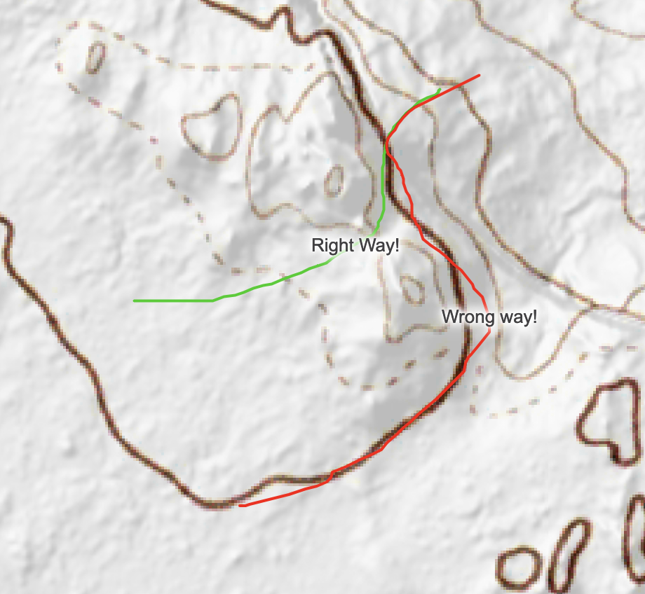 What looked on the map like an easy straight line traverse across mostly flat ground was actually hilly, with identical trees and random 10 foot cliffs everywhere. Typically, I would sight a landmark and walk towards it, but